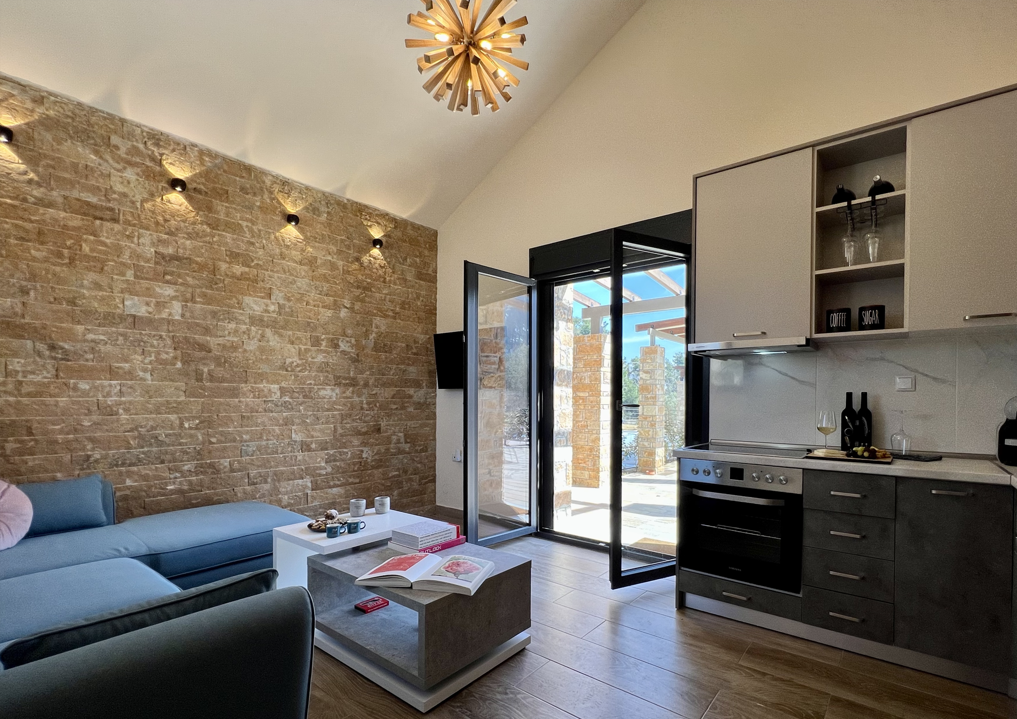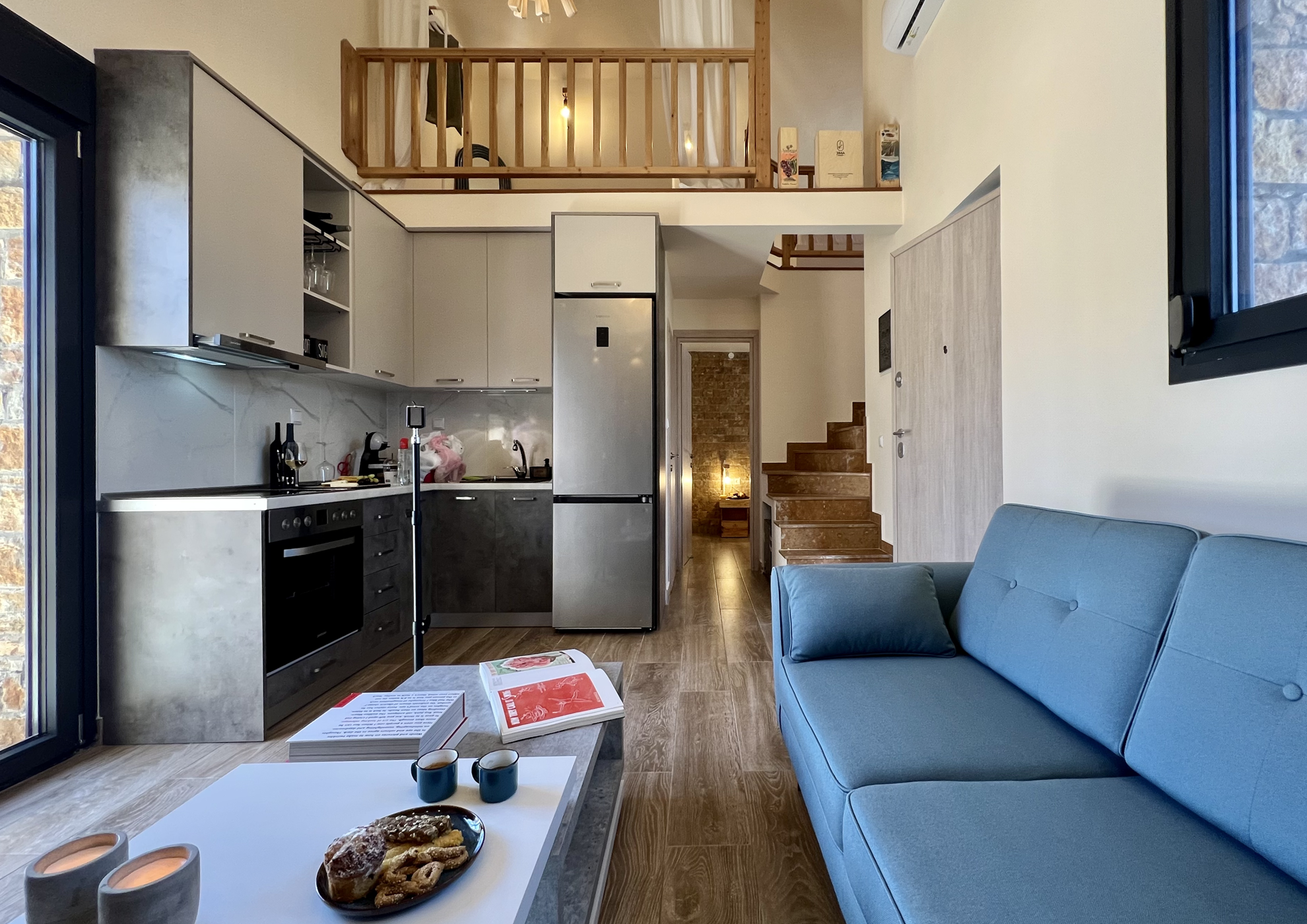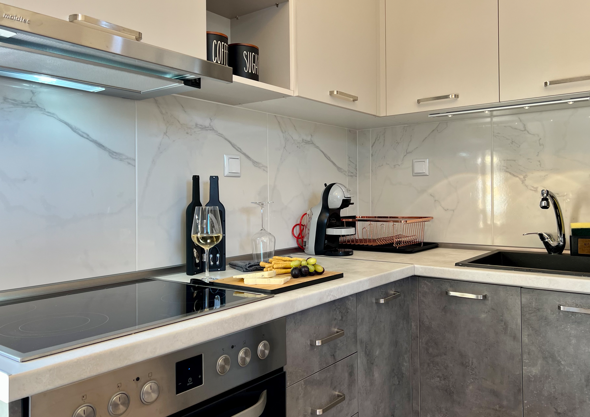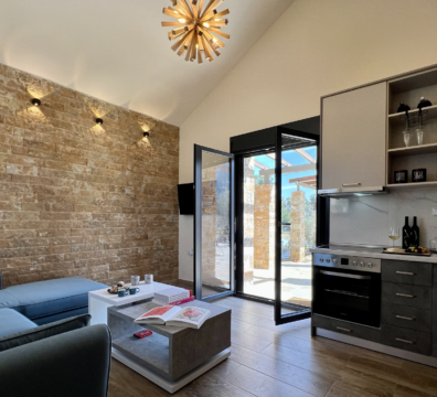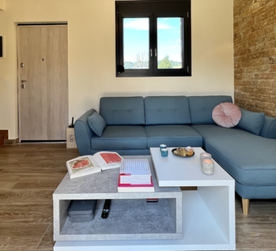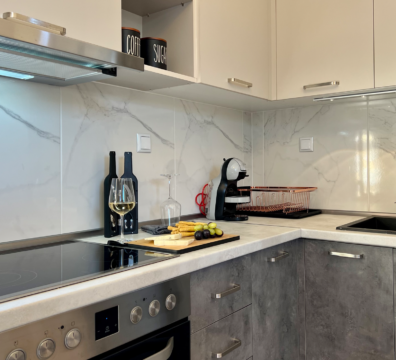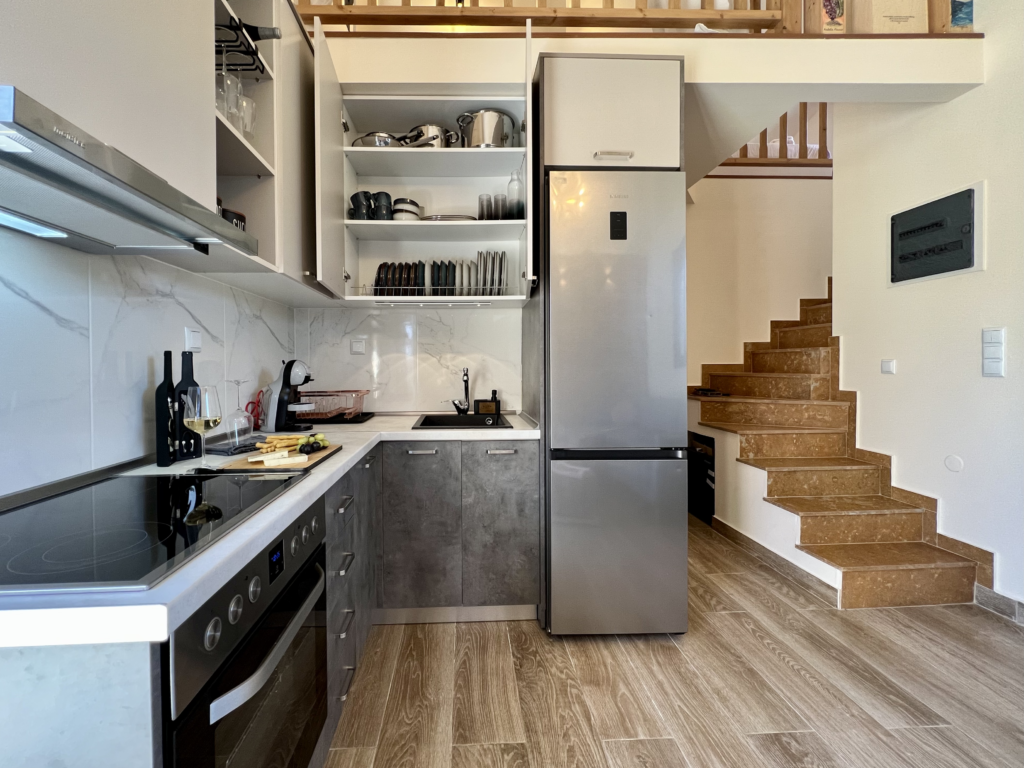 Mοντέρνα κουζίνα με σύγχρονα υλικά εξοπλισμένη με όλα τα απαραίτητα.