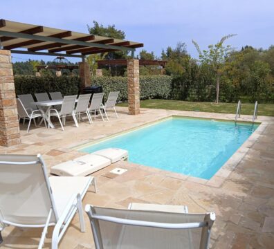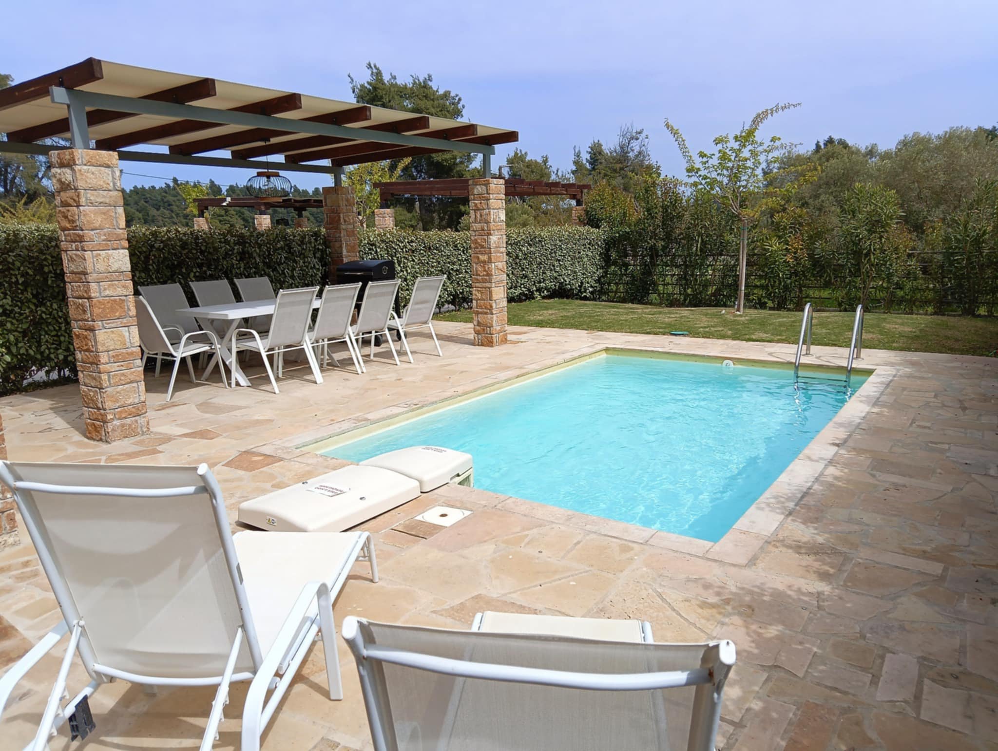Χαλαρώστε στις ξαπλώστρες δίπλα στην ιδιωτική σας πισίνα απολαμβάντας τον καλοκαιρινό ήλιο.